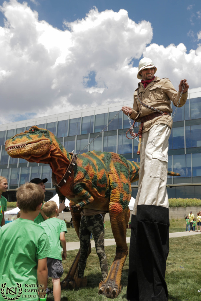 Our dinosaur performers are skilled puppeteers creating realistic movements from these magnificent creatures. When you hire a dinosaur performer, it also comes with a dinosaur handler/trainer dressed in safari attire to help facilitate audience interactions. They’ll engage your guests while leading the dinosaur around on a leash. Want to add an extra factor? Put our safari handlers on stilts!